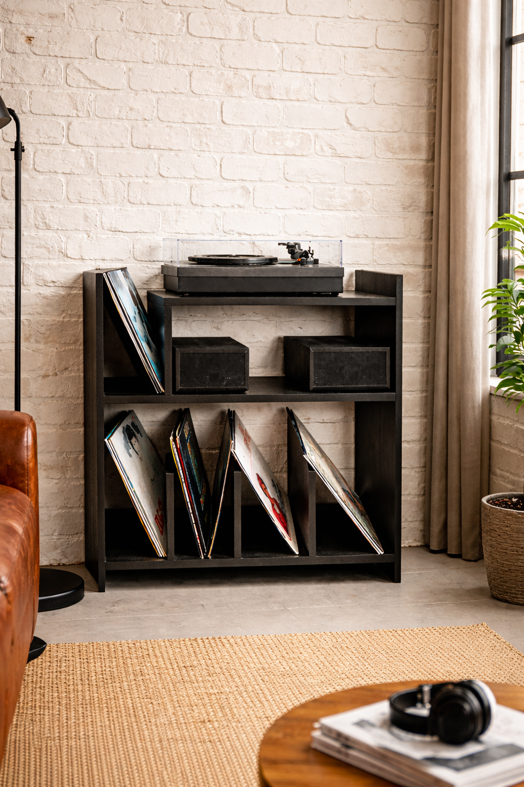 Для большой коллекции и полноценной аудиозоны с проигрывателем, усилителем и аксессуарами.